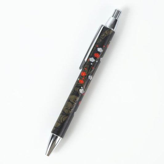 13-24 蒔絵ボールペン・本革巻き・黒革・紙箱入り・紅白梅