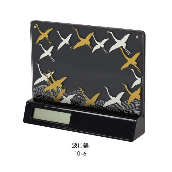 10-6 蒔絵時計付き写真立て「集い」 波に鶴
