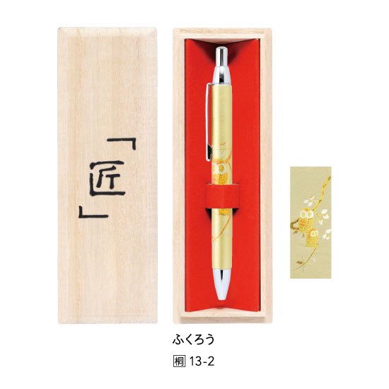 13-2 蒔絵ボールペン・本革巻き・金革・桐箱入り・ふくろう