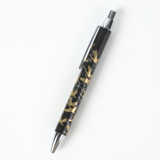 13-19 蒔絵ボールペン・本革巻き・黒革・桐箱入り・千羽鶴