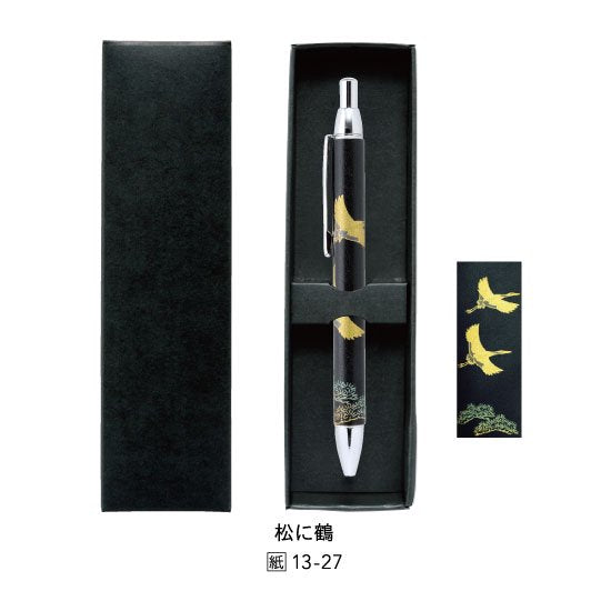 13-27 蒔絵ボールペン・本革巻き・黒革・紙箱入り・松に鶴